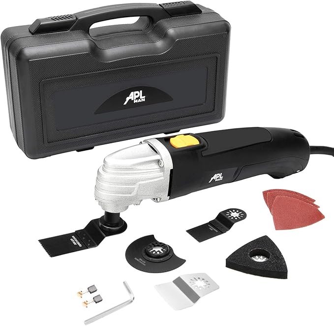 Em até 3x de R$ 65,66 sem juros APLMAN Multiferramenta oscilante, 3,5 Amp 22000 OPM com ângulo de oscilação de 4,5°, velocidades variáveis e 13 acessórios