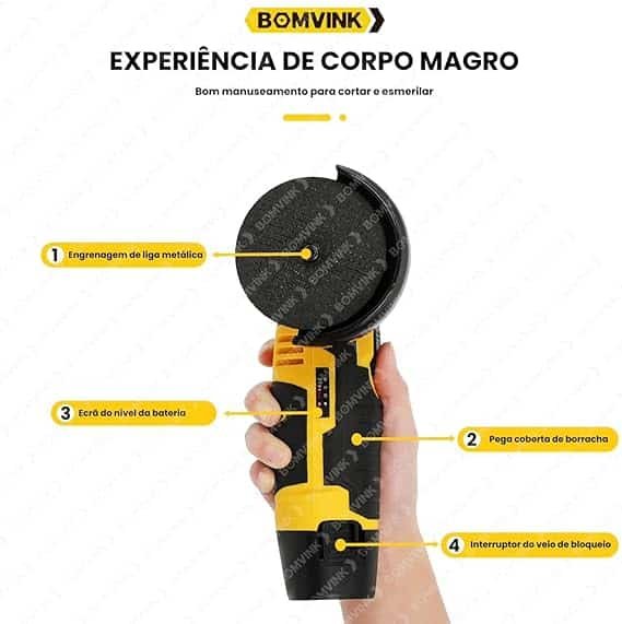 Lixadeira Esmerilhadeira Angular 21v Duas Baterias Recarregáveis 1500mah 19.500rpm Lixamento Polimentos
