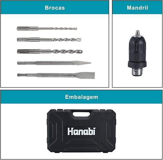 Martelete Perfurador Rompedor Professional 26mm 1300W 2.8J, Marca: Hanabi