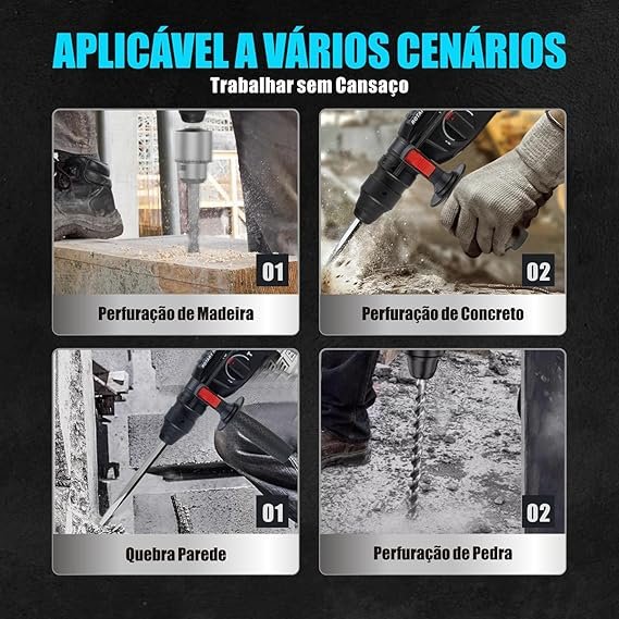 É perfeito para o trabalho diário. É especialmente adequado para instaladores de sistemas de ventilação e ar condicionado, eletricistas, encanadores, instaladores de tapetes e revestimentos. Além disso, ele usa o soquete SDS Plus que representa um avanço com seu antecessor por funcionar de forma intercambiável e tendo uma conexão melhor.