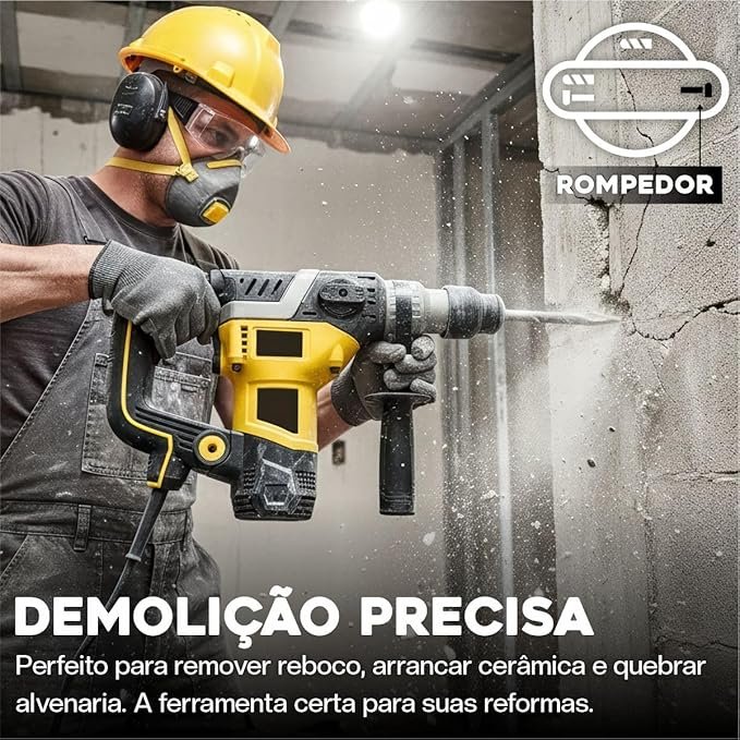 Desenvolvido para uso profissional e intensivo, ele combina alta potência, versatilidade e segurança, garantindo desempenho excepcional em perfurações e demolições leves.