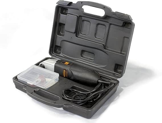 Lembra de quando você teve que ver naquele canto inalcançável? Corte, areia, e raspe nos lugares mais difíceis de alcançar com o kit de ferramentas oscilante de velocidade variável WEN. Com vários acessórios e um design compacto e leve de 1,3 kg, esta ferramenta oferece uma variedade de funções para todos os tipos de usuários. O motor de 2 amp cria em qualquer lugar de 10.000 a 20.000 oscilações por minuto, dependendo de onde a velocidade variável é definida. O kit inclui um estojo de transporte, uma lâmina raspadora, uma lixa triangular, papéis de lixar e uma lâmina de serra. Além disso, se houver um acessório adicional que você deseja comprar, a ferramenta WEN Multi é compatível com a maioria das ferramentas multifuncionais disponíveis no mercado. Não deixe que cantos apertados e bordas difíceis de cortar fiquem no seu caminho. Molde de base e raspe tinta e tapete. Corta facilmente cabos, bexigas, dutos de ar, gesso e tubos. Areia cimento, concreto, gesso, pedra, adesivo de azulejo, tinta e madeira, tudo com a multiferramenta oscilante de velocidade variável WEN. E por ser um produto WEN, sua compra vem com garantia de dois anos, uma rede nacional de técnicos qualificados e uma linha telefônica de clientes útil para garantir que você se lembre da WEN.